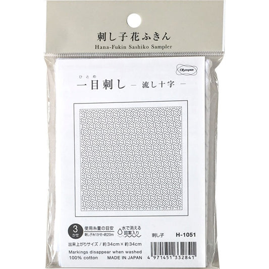 Olympus Sashiko Sampler (Hitome-Sashi) - "Nagashi-Juji" - White