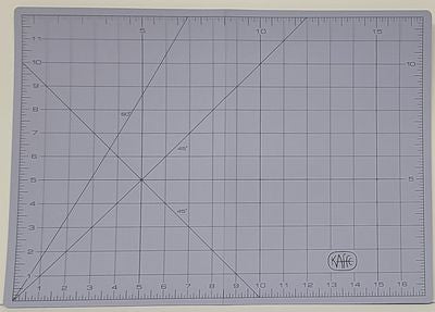 Gridded 12”x 17” color Lavender Folding Cutting mat. This cutting mat is also perfect for smaller spaces and traveling. Self healing material. Use with your favorite rotary cutter.