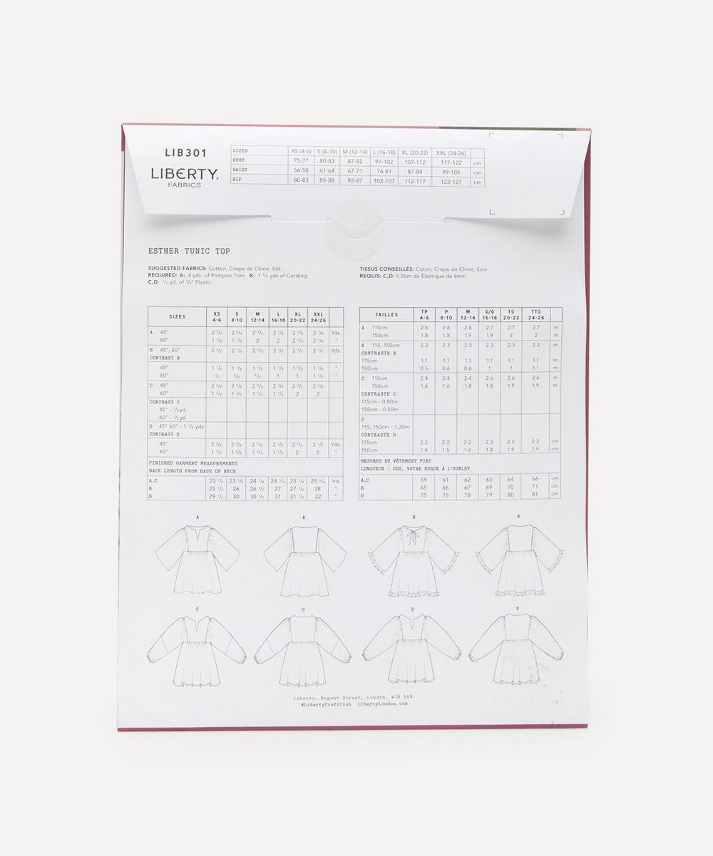 Liberty Fabrics Esther Tunic Top Sewing Pattern Size XS-XXL