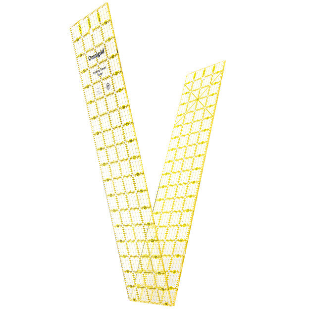- The 4" x 36" folding ruler has the following standard Omnigrid features:Edge markings for accurate measuringLaser cut edges for smooth, deep cuttingPatented double-sight lines that show up on light and dark fabricsHeavy-duty durable acrylic materialLeft- and right-hand numbering and angle system